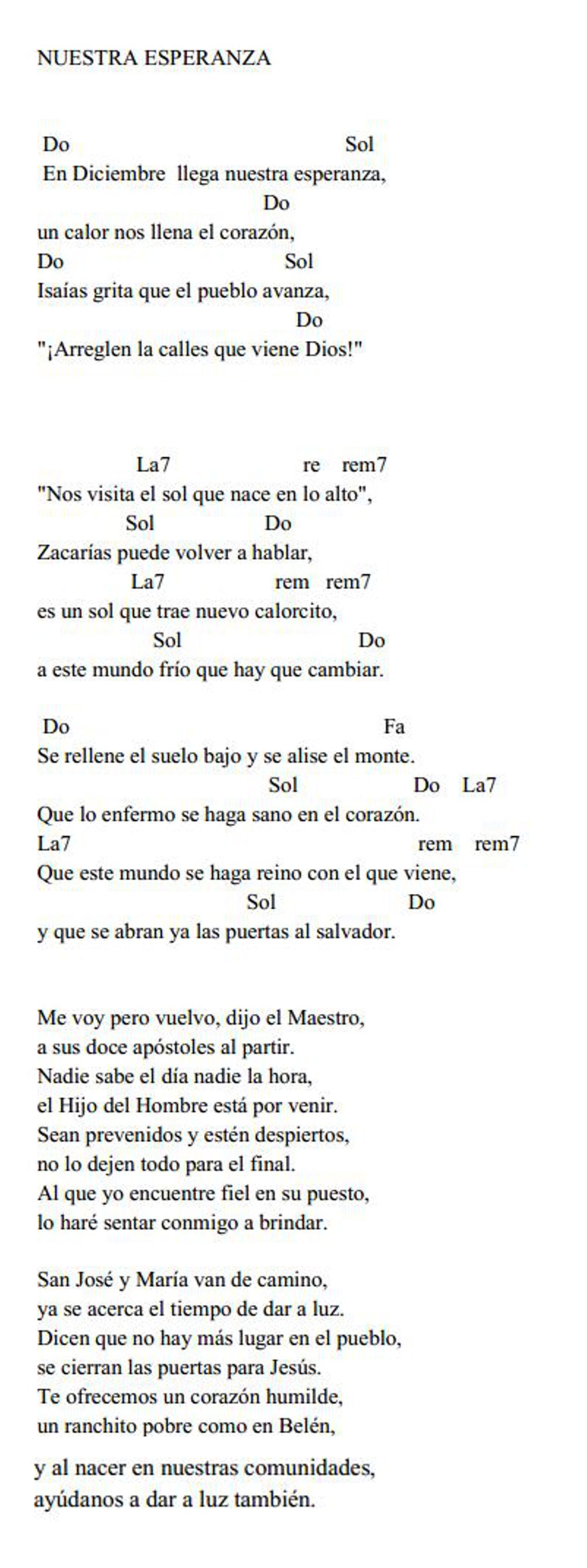 Adviento 29 Despertemos, llega Cristo 30 Levantemos la mirada 31 Nuestra esperanza 32 Toda la tierra espera 33 Un pueblo que camina Otros cantos para el tiempo de Adviento 112 Irá a llegar 21 Arriba los corazones 89 Lucerito del Señor 92 Virgen de la esperanza